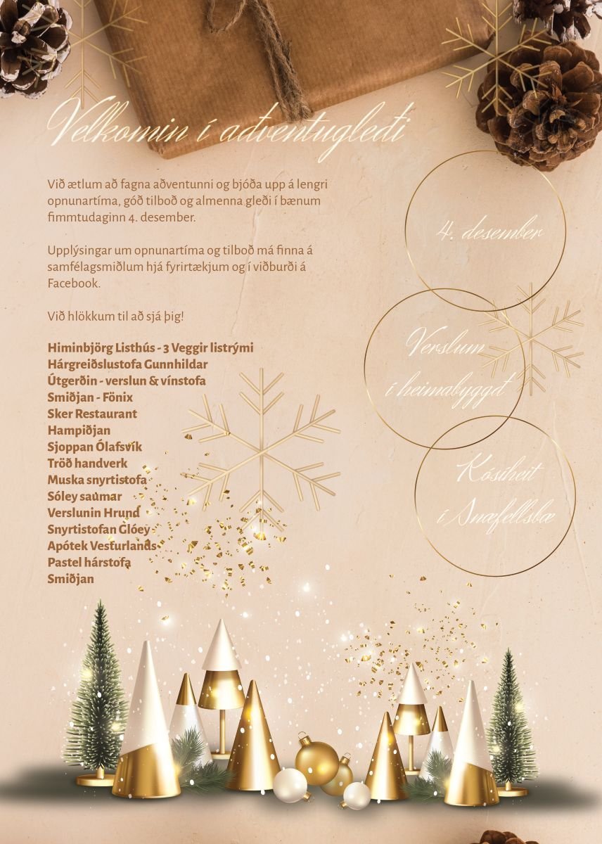 Á morgun fyllist Snæfellsbær af hátíðleika og jólaanda þegar verslanir og þjónustuaðilar í Ólafsvík, Hellissandi og Rifi taka höndum saman og bjóða til árlegrar aðventugleði.