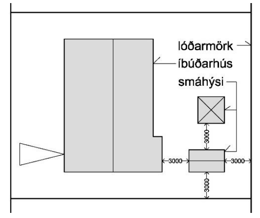 - Fjarlægð milli smáhýsa innbyrðis og frá glugga eða hurð húss, svo og frá útvegg timburhúss er að minnsta kosti 3,0 m.