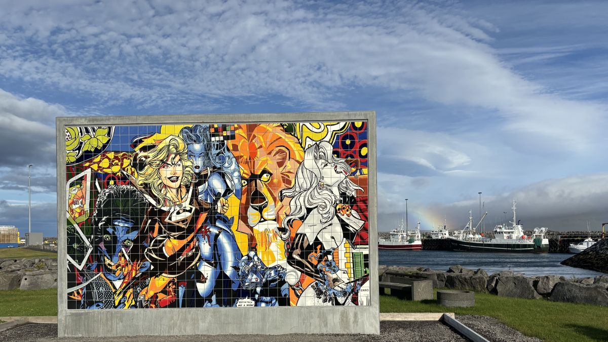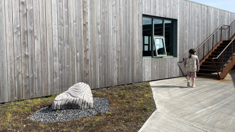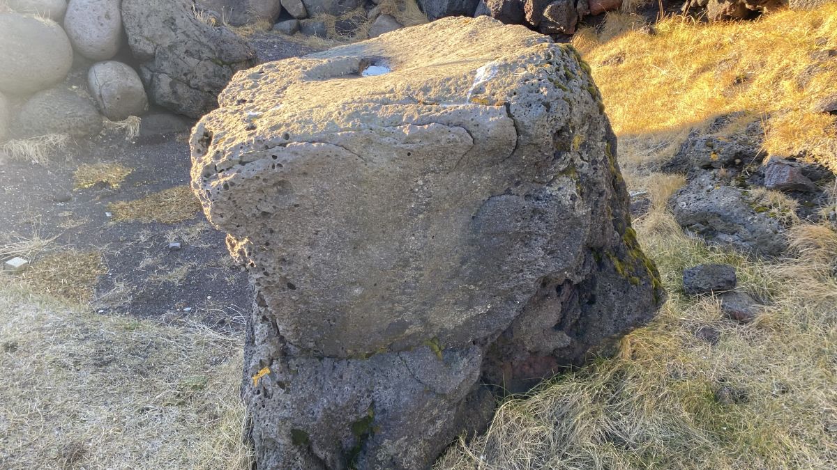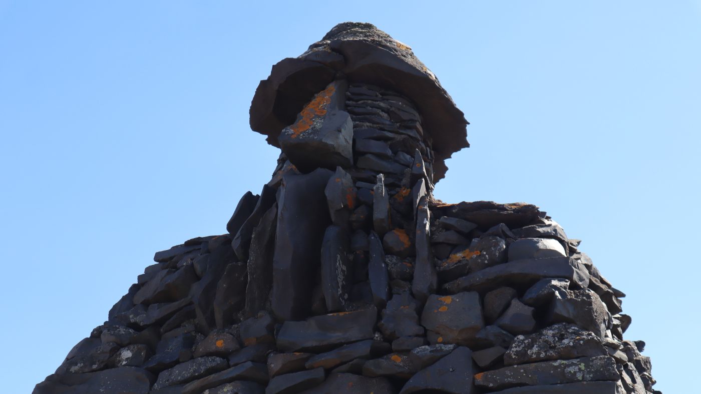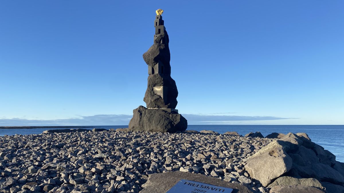 Listaverkið er 6 metrar að hæð og 3 - 4 metrar á breidd og í það fóru hátt í 300 tonn af grjóti.