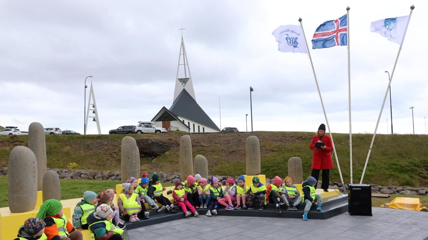 Listaverkið er eftir Ragnar Kjartansson myndhöggvara og var það afhjúpað 17. júní 1985.