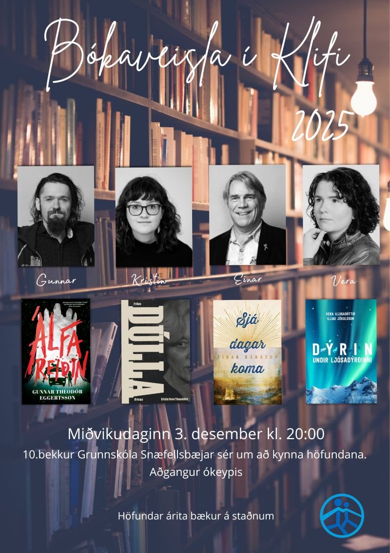 Bókaveisla Grunnskóla Snæfellsbæjar verður haldin í félagsheimilinu Klifi miðvikudaginn 3. desember og hefst kl. 20:00.